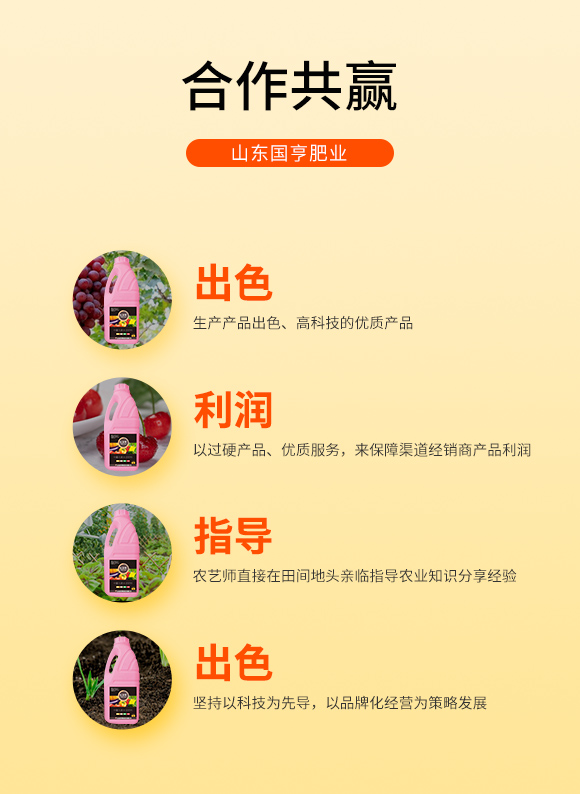 公司緊隨市場變化,關(guān)注肥料高新科技的發(fā)展趨勢,在國內(nèi)市場銷售的同時,也積極出口國外貿(mào)易。公司現(xiàn)有“國亨”“ 田園壯”兩大品牌,依托強勢的服務(wù)和強大的品牌理念,公司在不斷發(fā)展壯大。一直以來,公司總是處于時代的前列,超前發(fā)展的思想,始終占領(lǐng)市場競爭的至高點。
