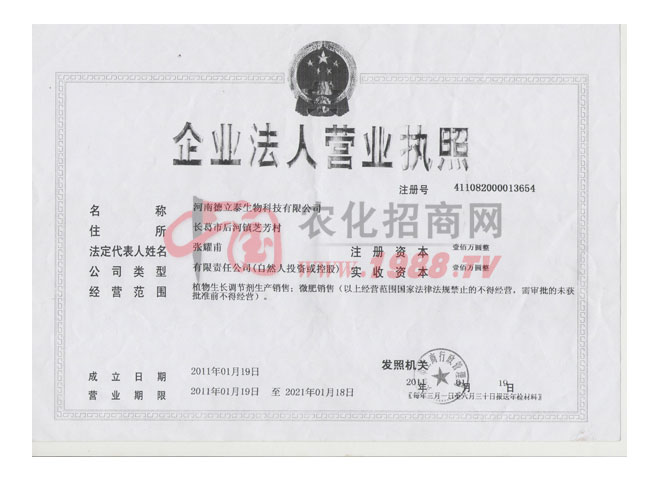 河南德立泰生物科技有限公司成立于2010年,生產(chǎn)基地占地面積68畝,總投資1000萬元。前身為德立泰生物制藥廠,是農(nóng)業(yè)部、河南發(fā)改委定點的農(nóng)藥生產(chǎn)企業(yè),全國專業(yè)的控旺、座果、膨果調(diào)節(jié)劑,河南省早專業(yè)的藥性調(diào)理劑研發(fā)生產(chǎn)基地。公司依托中國農(nóng)業(yè)大學、河南農(nóng)業(yè)大學、南京土壤研究所等單位強大的科技研發(fā)力量做后盾,背靠河南農(nóng)業(yè)大學雄厚的師資力量,成熟的科研基地,杰出的復合型人才。同時與國內(nèi)眾多農(nóng)業(yè)院校和科研機構建立了多方位、深體系的技術合作關系。