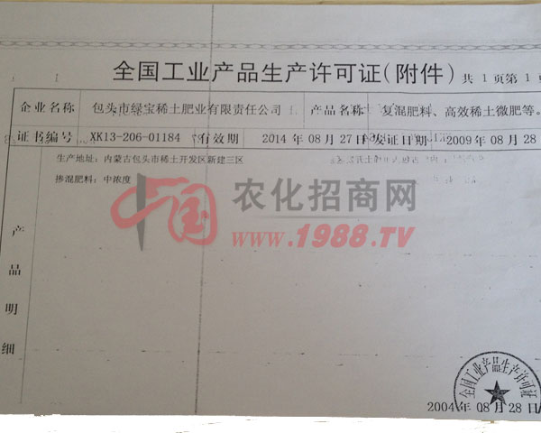 包頭市綠寶稀土肥業(yè)有限責(zé)任公司是內(nèi)蒙古自治區(qū)星火計劃重點企業(yè)和內(nèi)蒙古自治區(qū)高新技術(shù)企業(yè),包頭市重點工業(yè)企業(yè)。