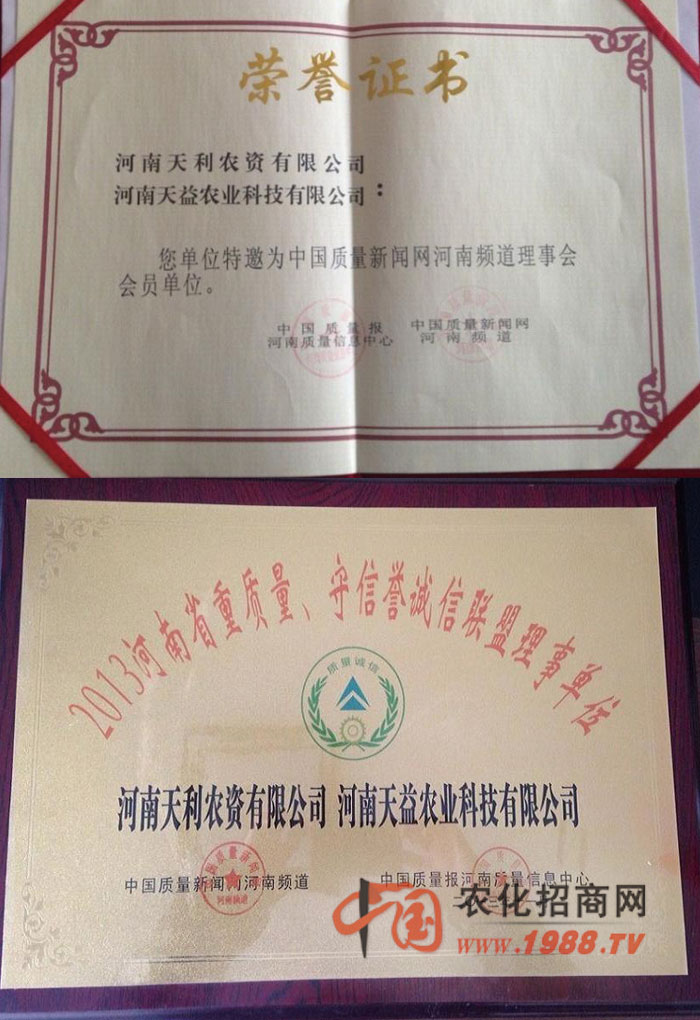 河南天利農(nóng)資有限公司為更好拓展市場(chǎng)和適應(yīng)市場(chǎng)發(fā)展趨勢(shì),2013年9月注冊(cè)分公司“河南天益農(nóng)業(yè)科技有限公司”注冊(cè)資金為2000萬(wàn)元,涉及行業(yè):農(nóng)業(yè)技術(shù)服務(wù)、開(kāi)發(fā);化肥;種子;貨物進(jìn)出口業(yè)務(wù)。不僅讓更多農(nóng)民朋友乃至東南亞各國(guó)的農(nóng)民朋友用到河南天利農(nóng)的增產(chǎn)系列產(chǎn)品,天利農(nóng)秉著服務(wù)三農(nóng),造福全世界農(nóng)民之宗旨,不斷打造出更好更省心更適合農(nóng)民的好農(nóng)藥。2013年河南天利農(nóng)資有限公司被國(guó)家輕工業(yè)部評(píng)為《著名品牌》;河南質(zhì)量監(jiān)督局評(píng)為《重質(zhì)量守信譽(yù)企業(yè)》;由河南科技報(bào)社為代表的八家單位評(píng)為《河南省科技創(chuàng)新具影響力企業(yè)》;